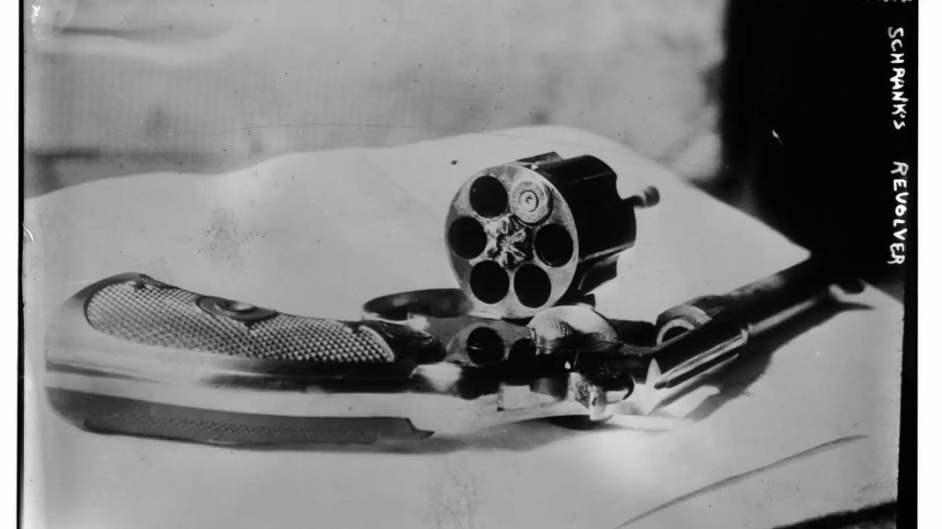 It happened at a Milwaukee campaign stop while TR was running for another presidential term with the Bull Moose Party. The former president was leaving his hotel to attend a campaign event when the vengeful Schrank stepped from the crowd and fired. Two things saved his life: a steel case for his glasses and a manuscript of the 50-page speech. Both objects slowed the bullet, which ultimately lodged in Roosevelt’s chest, stopping just short of any vital organs.