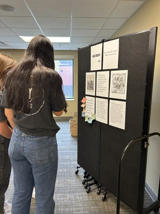 Pictured: Teachers who attended the Library’s inaugural educator professional development event in July 2025 (above) and students participating in Library-created educational activities in May 2024 (below)